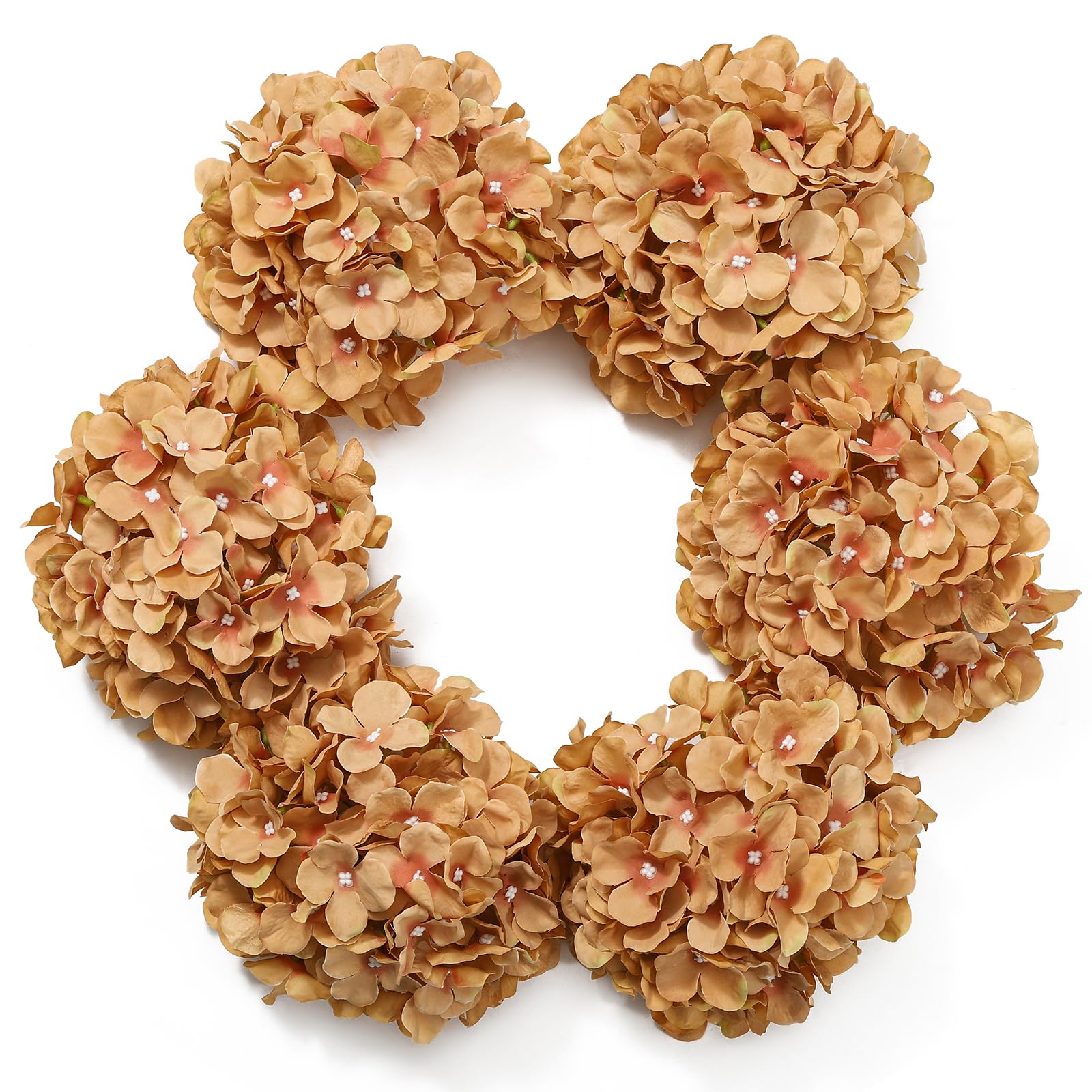 DuHouse Hydrangea Silk Flowers Artificial Hydrangea Heads with Stem Fake Flowers for Wedding Home Garden Centerpiece Pack of 6 (Coffee)