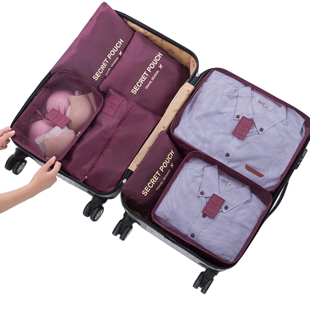 MATERIAL: Packing cubes made of polyester, waterproof, reusable, easy to clean and carry on. The 7pcs storage bags can basically hold the items which a person's needed for 7-10 day trip. Can be used with the usual 24 inch Luggage, just filled. 7 DIFFERENT SIZE POUCHES: Luggage organizer set includes 3 packing cubes + 3 pouches + 1 shoe bag. They are manually sewn, there sizes will be some Error, the Error we control in the ± 0.8(in). SET INCLUDES: 3 Mesh Packing Cube (L: 16"x12"x4.7", M: 12.2"x11"x4.7", S: 12.2"x8.2"x4.7"), 3 Pouches (L: 13.4"x11", M: 10.2"x9.8", S: 10.2"x6.3"), 1 Shoe bag (13.7"x8.2") Your Space - Packing cubes for suitcases save space in your luggage/bag ,help you classifying your belongings. Fit 20/22/24/26/28 inch and larger suitcases, save space. THE BEST CHOICE FOR TRAVEL: Perfect Travel Storage Bag for clothes, pajamas, underwear, lingerie, bra or shoes, socks, toothbrushes, towels, cosmetics, beauty products, makeup toiletries or even electronics accessories. Ideal gift for frequent flyer, casual camper, hiker, traveler, or backpacker. Best Choose: