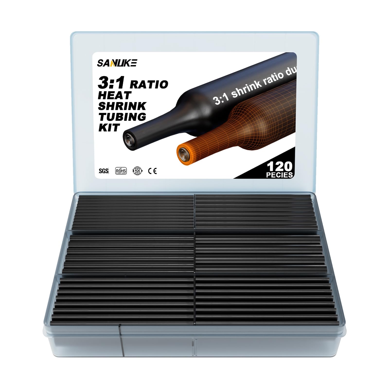 Sanuke Heat Shrink Tubing Kit 120 PCS - 3:1 Ratio Adhesive Lined, Marine Grade Shrink Wrap - Industrial Electrical Heat Shrink Tubing - Waterproof