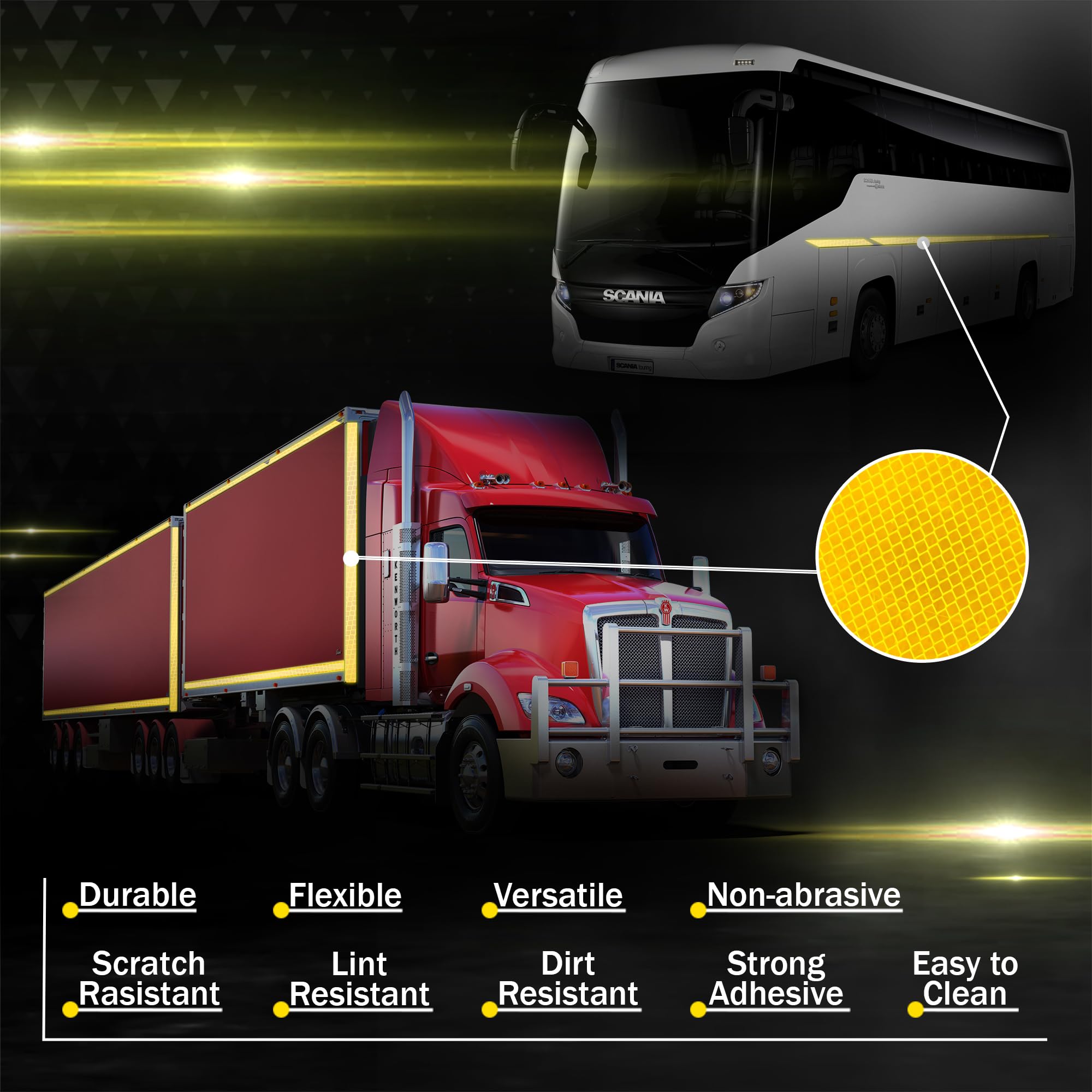 Made from genuine Diamond Grade reflective material, this tape delivers unmatched brightness and retro-reflective performance. Ensures vehicles, trailers, and equipment are clearly visible from long distances β day and night.