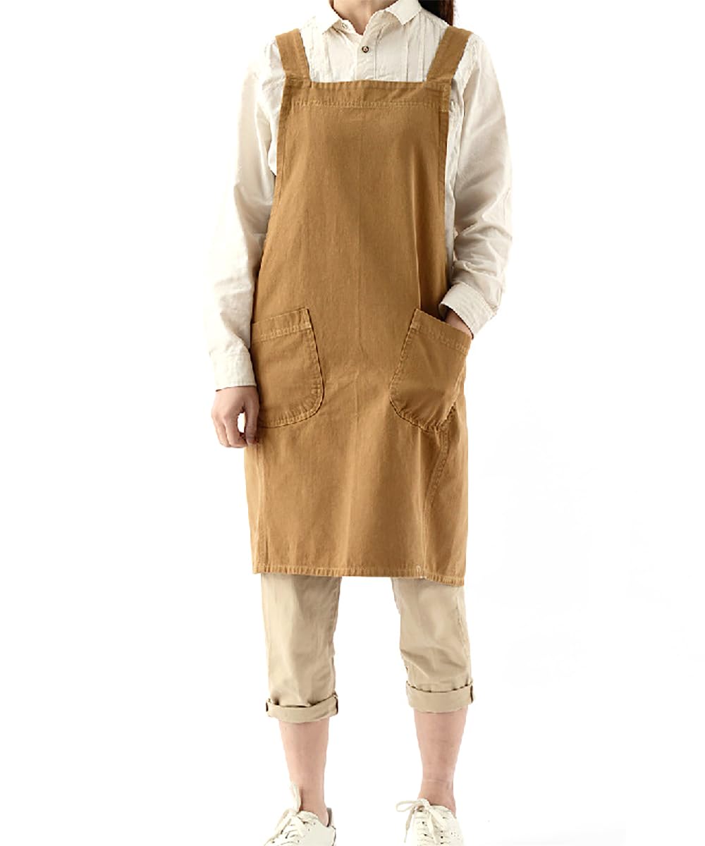 Tobyan Soft Cotton Linen Apron for Women - Non-tie Cross Back Apron with Pockets, Great for Florist and Kitchen