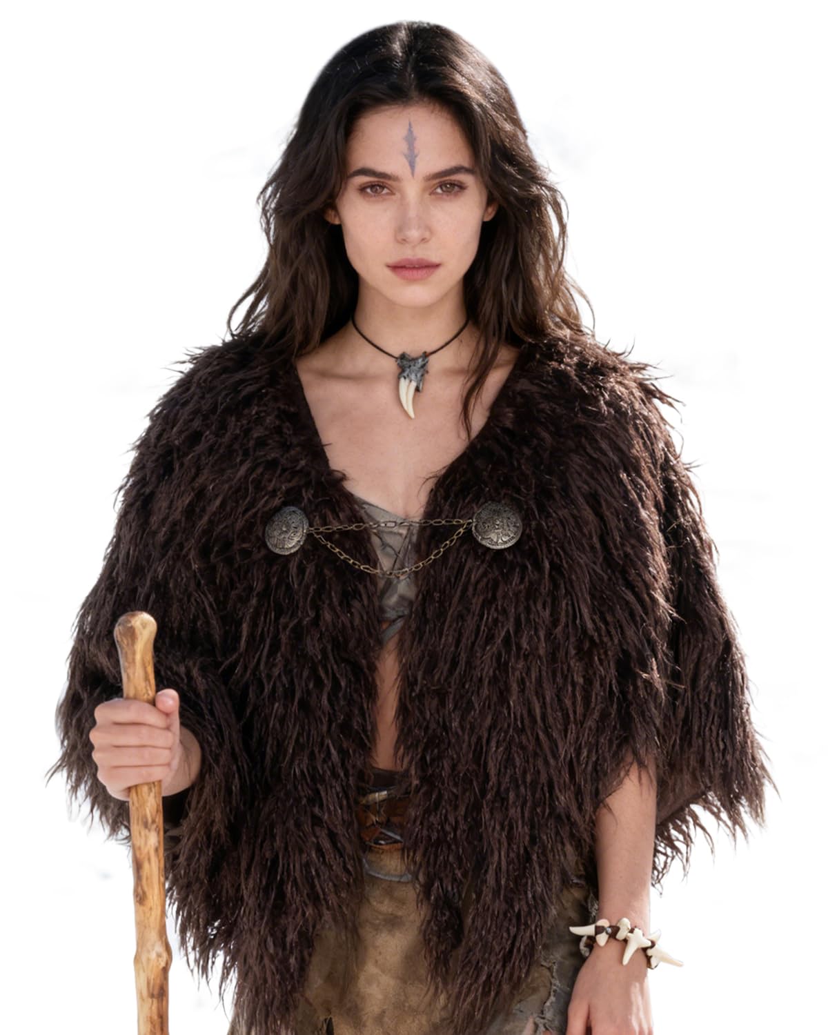 Material: 1 - Made from cruelty-free faux fur for a luxurious feel. Durable and comfortable; 2 - high-quality Faux suede lining; 3 - The vintage metal clasp doubles as both a functional closure and a statement piece, evoking Viking-age. Medieval Design: 1 - Inspired by the bold, unrefined elegance of Viking-era warriors; 2 - Anti-Slip Shoulder: Rounded shoulder curvature ensures stability during movement (e.g., archery, swordplay, outdoor events).3 - The cloak is adorned with a detailed Viking brooch chain clasp, authentic Norse style. Adjustable Fit: One Size Fits Most. Designed with a flexible clasp and generous sizing, this cape suits a wide range of body types. Layer it over costumes or casual wear for added warmth and drama. Versatile Costume Essential: Fur Cloak Ideal for Viking, medieval, fantasy, or Renaissance costumes. Pair it with armor, tunics, or gowns to complete your warrior, barbarian, pirate or mystical character look. Also works as a stylish winter shoulder wrap for everyday bohemian outfits. Perfect Gift for History Fantasy Fans: Perfect for Halloween, Medieval themed parties, theatrical performances, this cape is a standout gift for Viking enthusiasts, LARP adventurers, or fans of shows like Vikings and The Last Kingdom. L'VOW Viking Fur Cape with Clasp Medieval Fur Shawl Shoulder Wrap Mantle Renaissance LARP Cosplay Costume