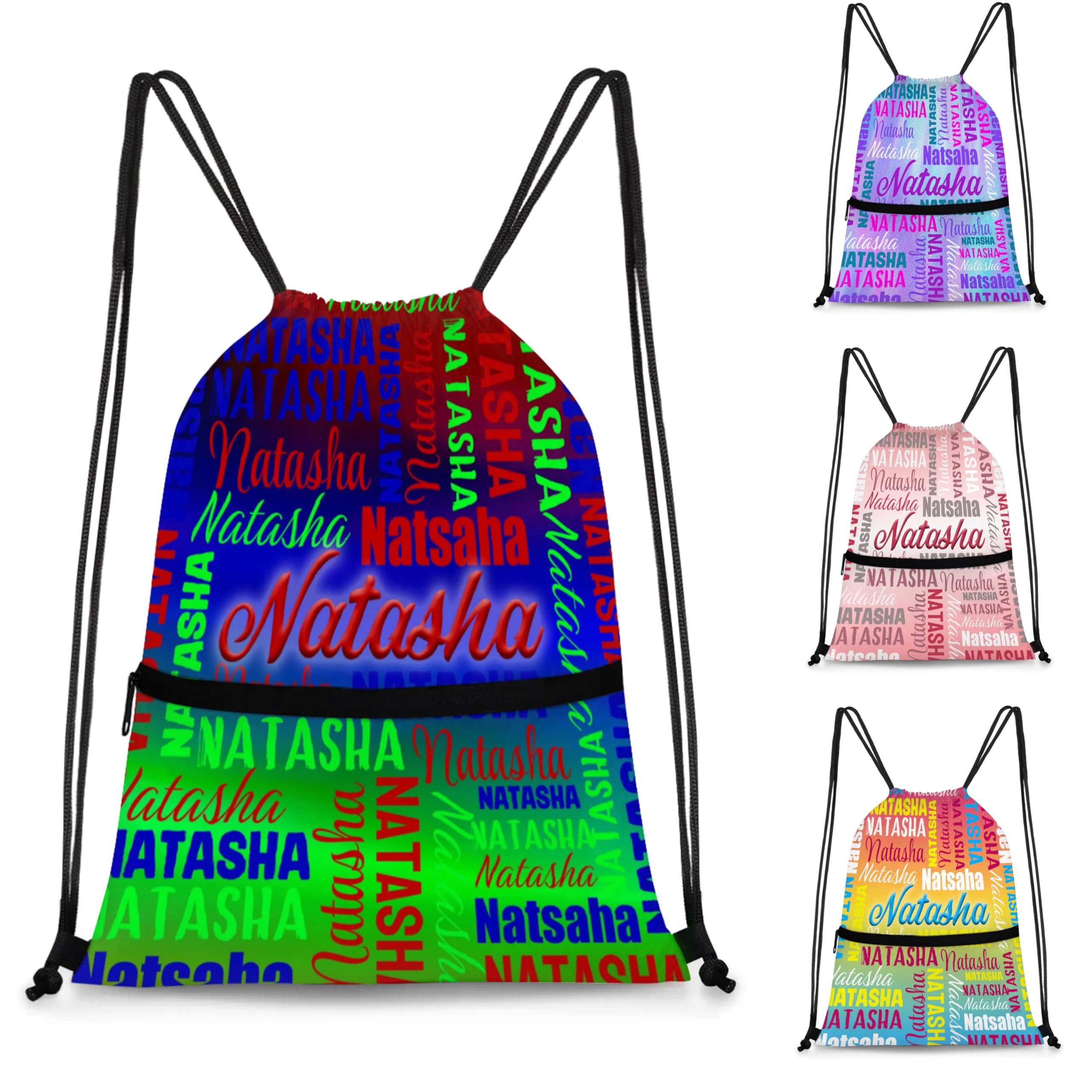 【MATERIA】 Our drawstring pockets are made of quality and sturdy polyester fabric, built to last. 【BIG CAPACITY】 18inch X 14 inch,Can accommodate mobile phone, wallet, cups, umbrella or other items.There is also a zippered pocket on the outside, suitable for storing small items. 【CONVENIENT】 The drawstring opening and closing can store items conveniently and quickly and take them out easily. 【SUITABLE FOR VARIETY OF OCCASIONS】 It's perfect for gym, sport, yoga, dance, travel, carry-on, luggage, camping, hiking, team work, training and more!You could probably decorate on it, perfect choice for special gift. 【CUSTOM DRAWSTRING BACKPACK】 Click "Customize Now" button, add the name or text in the custom area.Our gym bags can also be given as gifts to your family or friends.It will be a very special gift! CONVENIENT: The drawstring opening and closing can store items conveniently and quickly and take them out easily.