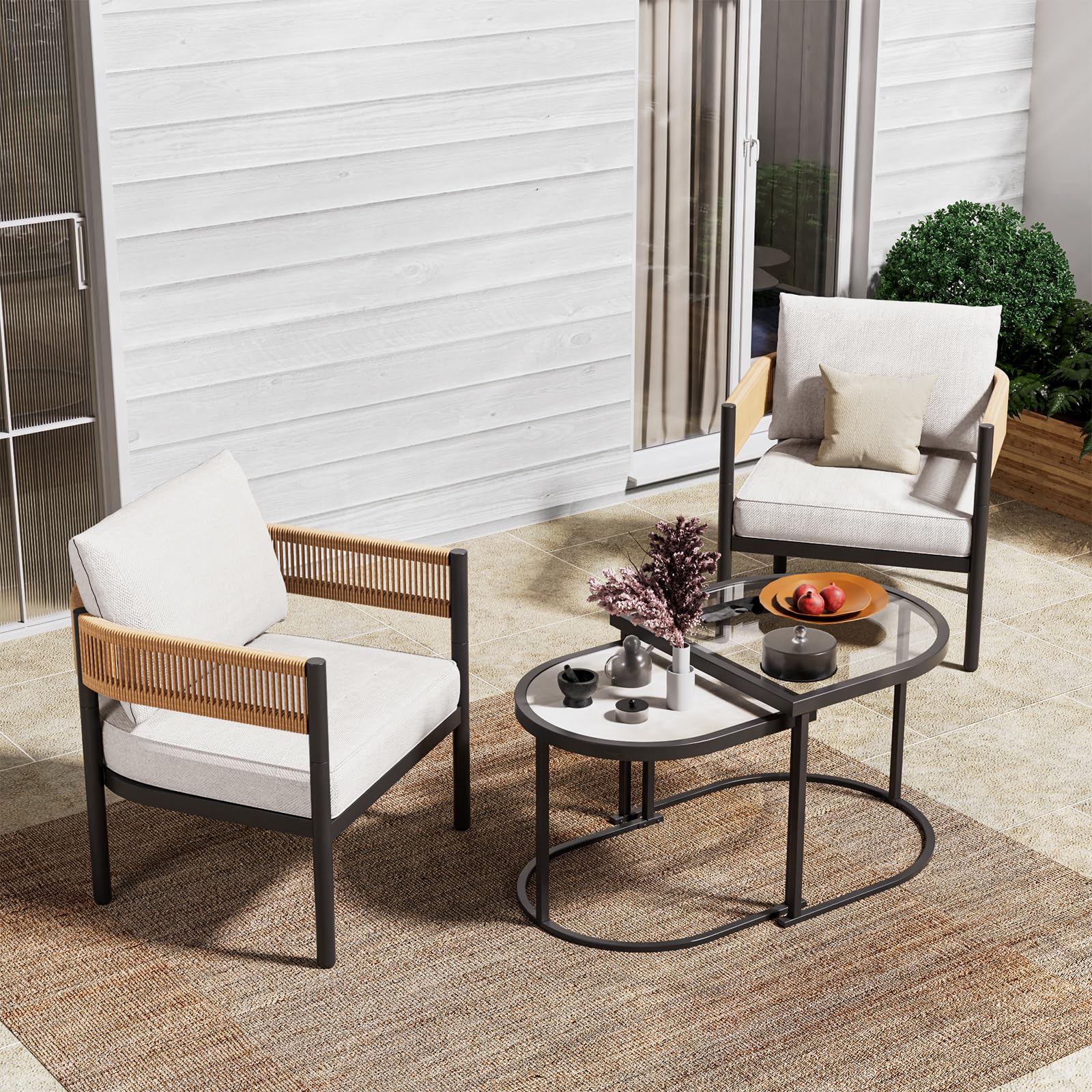 Grand patio 4-Piece Outdoor Conversation Set with 2 Single Chairs and 2 Patio Coffee Tables, Wicker Furniture Set, Natural